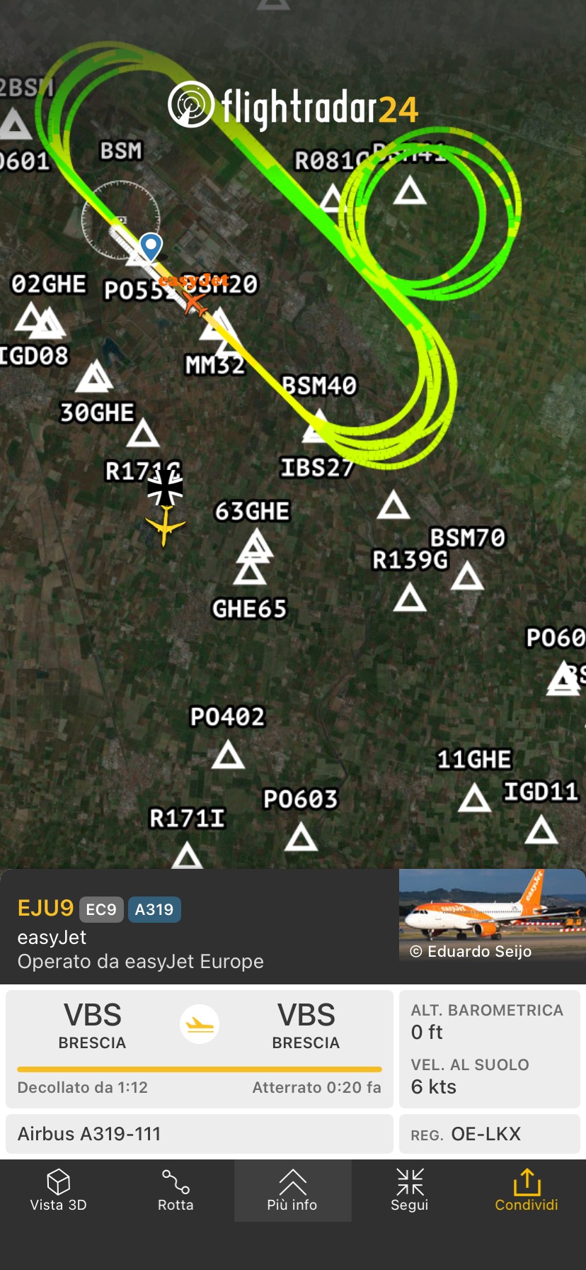 Mentre un Airbus 319-111 della easyJet stamani da Milano Malpensa si é spostato a Brescia come EJU9094 e continua a fare circuiti addestrativi per qualificare piloti, allo stesso modo con la croce teutonica c’é un A350-900 della Luftwaffe che da Colonia come GAF939 farà addestramento a Verona.