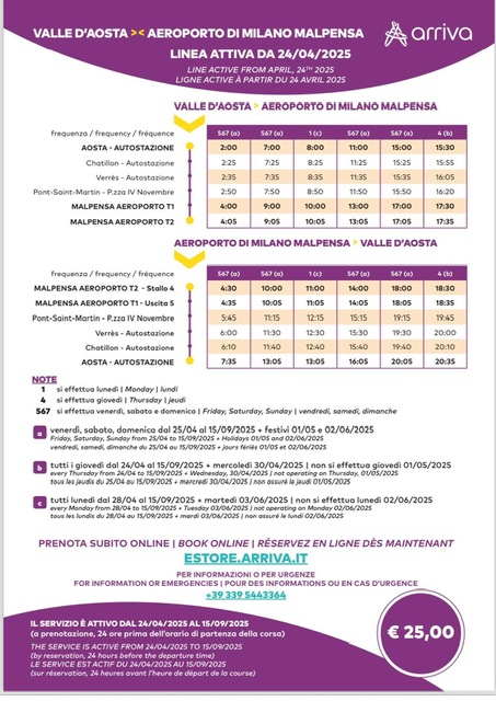Arriva ha attivato una nuova linea che collega plurisettimanalmente Aosta e altri centri con Milano Malpensa.