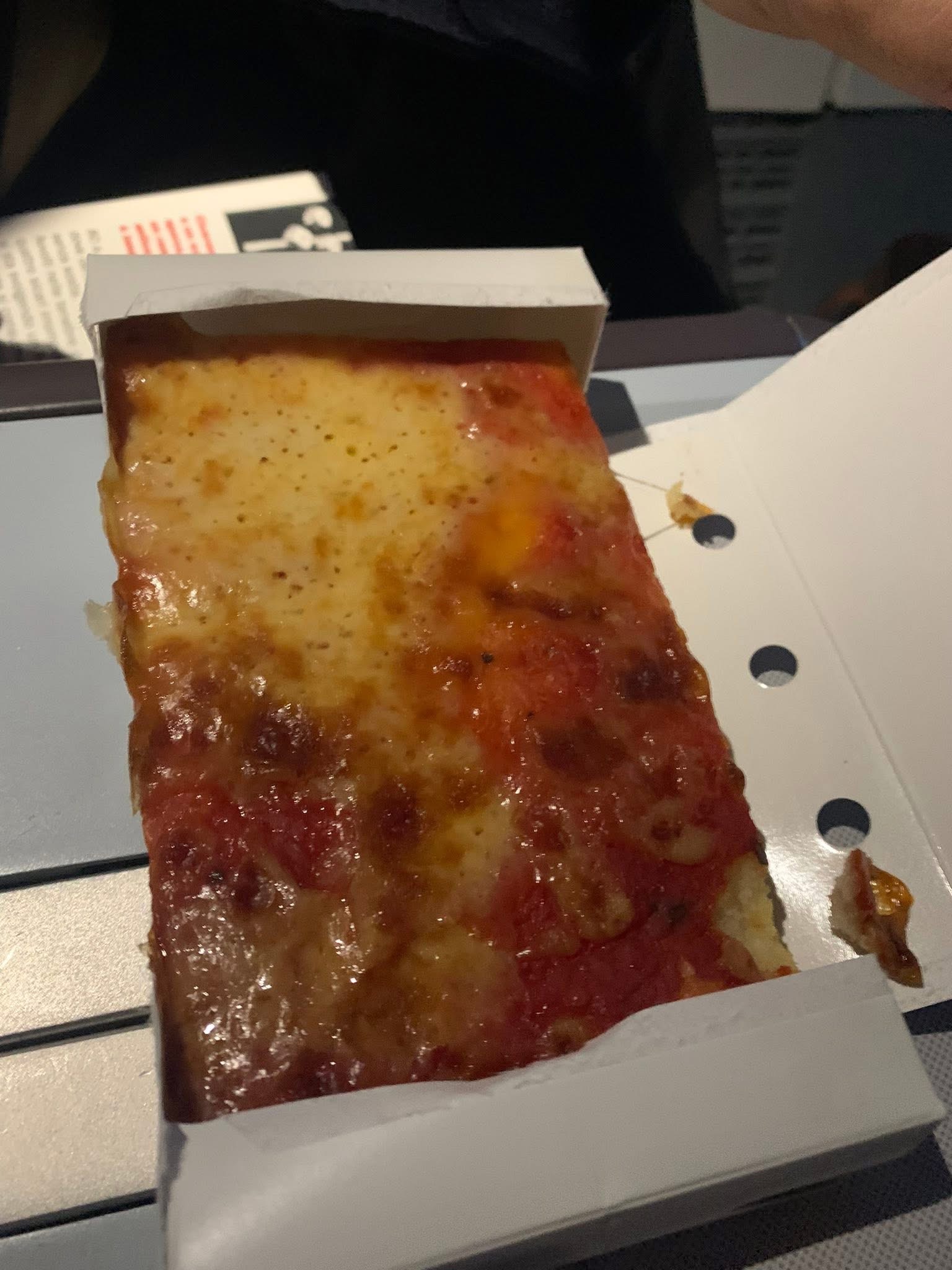 Un’ora prima dell’atterraggio c’é un trancio di pizza come snack.