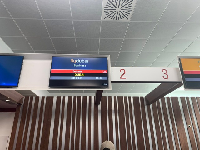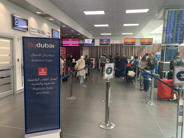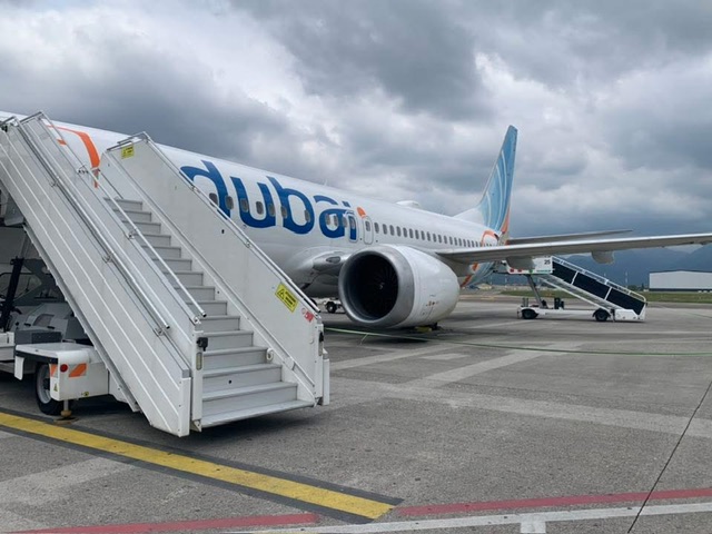 Il volo FZ1573 é previsto con il Boeing 737-8 MAX con marche A6-FMG. L’aereo é giunto alle 12:05 con 5 minuti di anticipo. Il nostro aereo é stato costruito e consegnato nel novembre 2018, gli interni sono con 10 posti in business class e 156 in economy class. Invece il volo FZ1574 decolla ogni giorno alle 13:40. Oggi l’aeroporto é un pò caotico, sopratutto ai controlli di sicurezza, gli spazi sono ristretti, ma a breve vi saranno nuove aree dove le attuali macchine radiogene verranno sostituite da quelle più innovative di tipo 3. Praticamente un sistema che effettua una tomografia al bagaglio. Chi vuole evitare un pò di fila può acquistare il fast track.