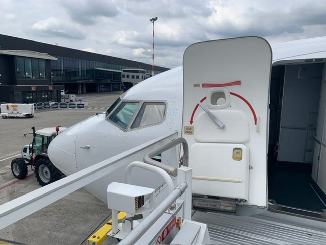 Poco meno di un ora dalla partenza viene iniziato l’imbarco dal gate B2, prima la business class e poi la economy class. L’aereo si raggiunge a piedi in pochi minuti. Tutto é abbastanza veloce, siamo quasi pieni sia in business class, che in economica.