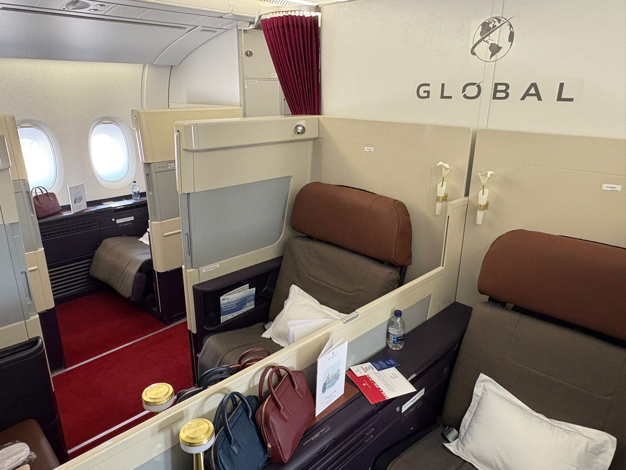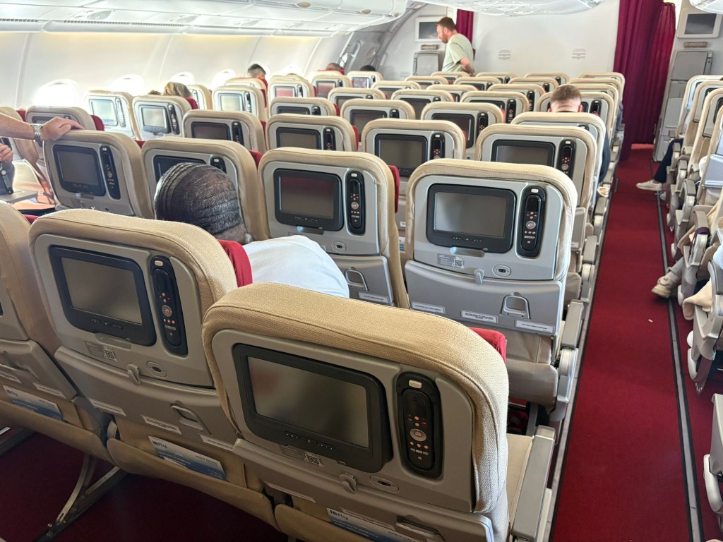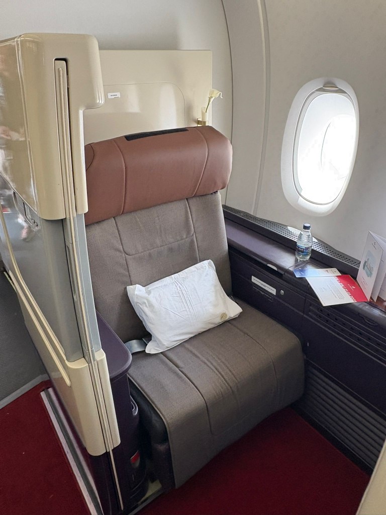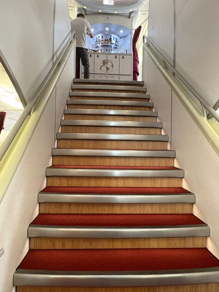 Oltre alla business class, invece la First Class e’ al piano di sotto in abreast 1-2-1, la prima ad imbarcare e sbarcare come concetto. La economy a seguire nel piano di sotto con sistemazione 3-4-3 e nella parte posteriore del piano di sopra a 2-4-2.