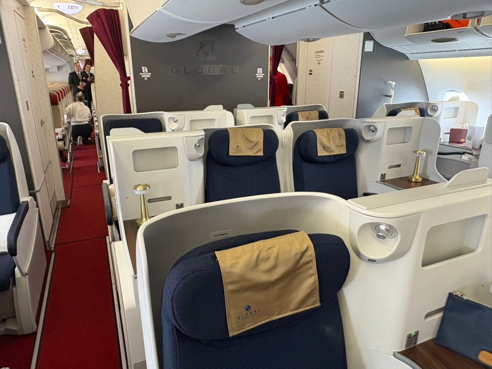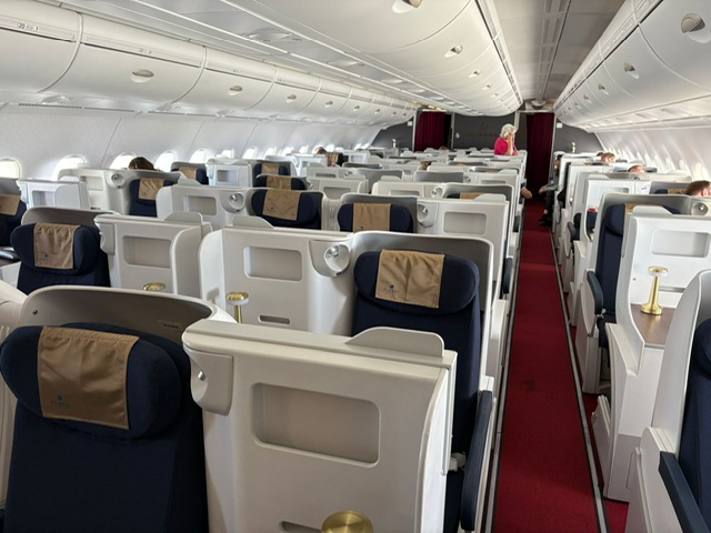 La business class e’ integralmente nell’upper deck con il classico 1-2-1 come abreast.