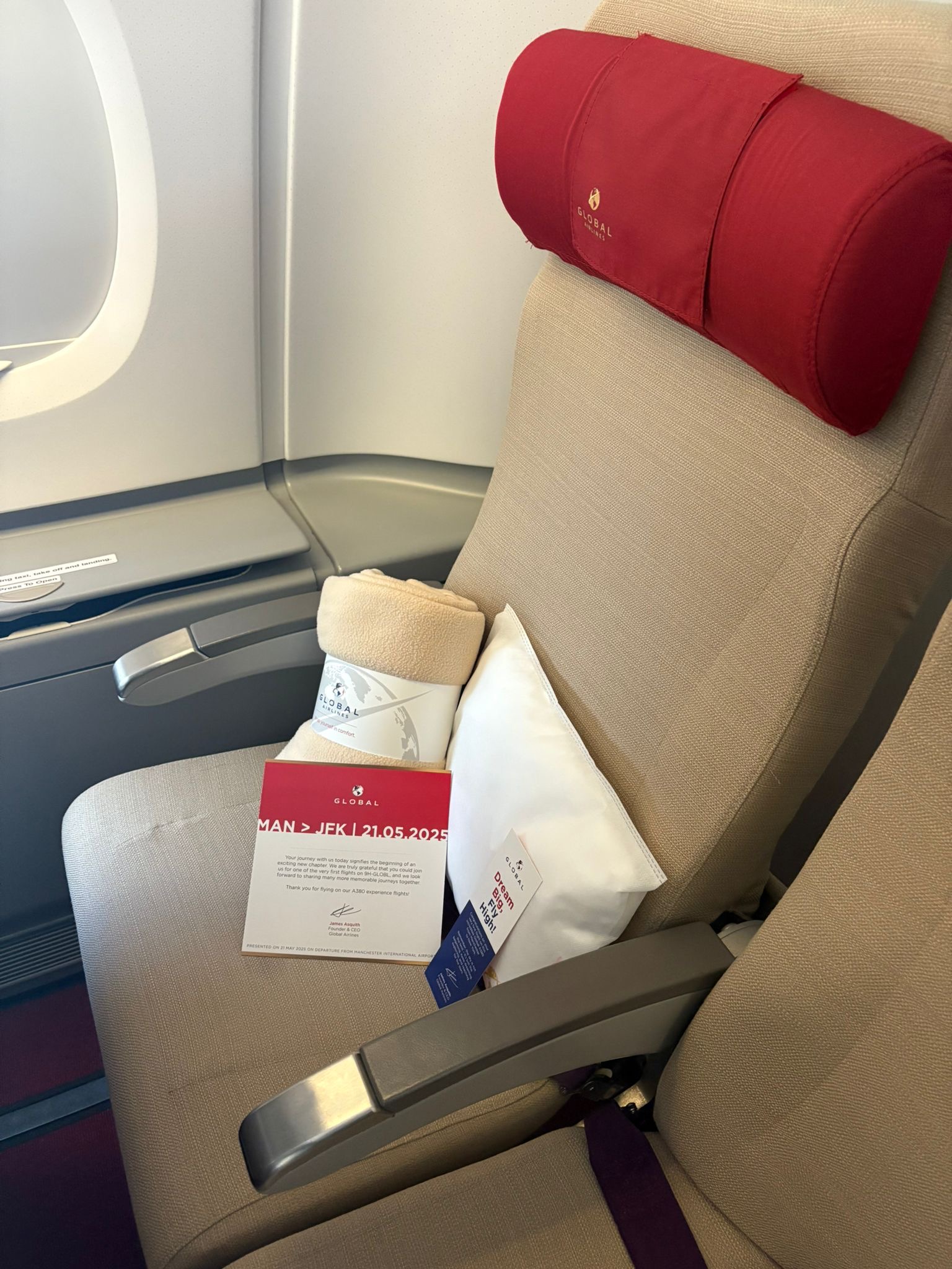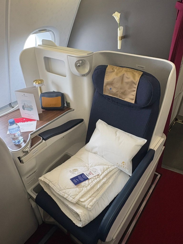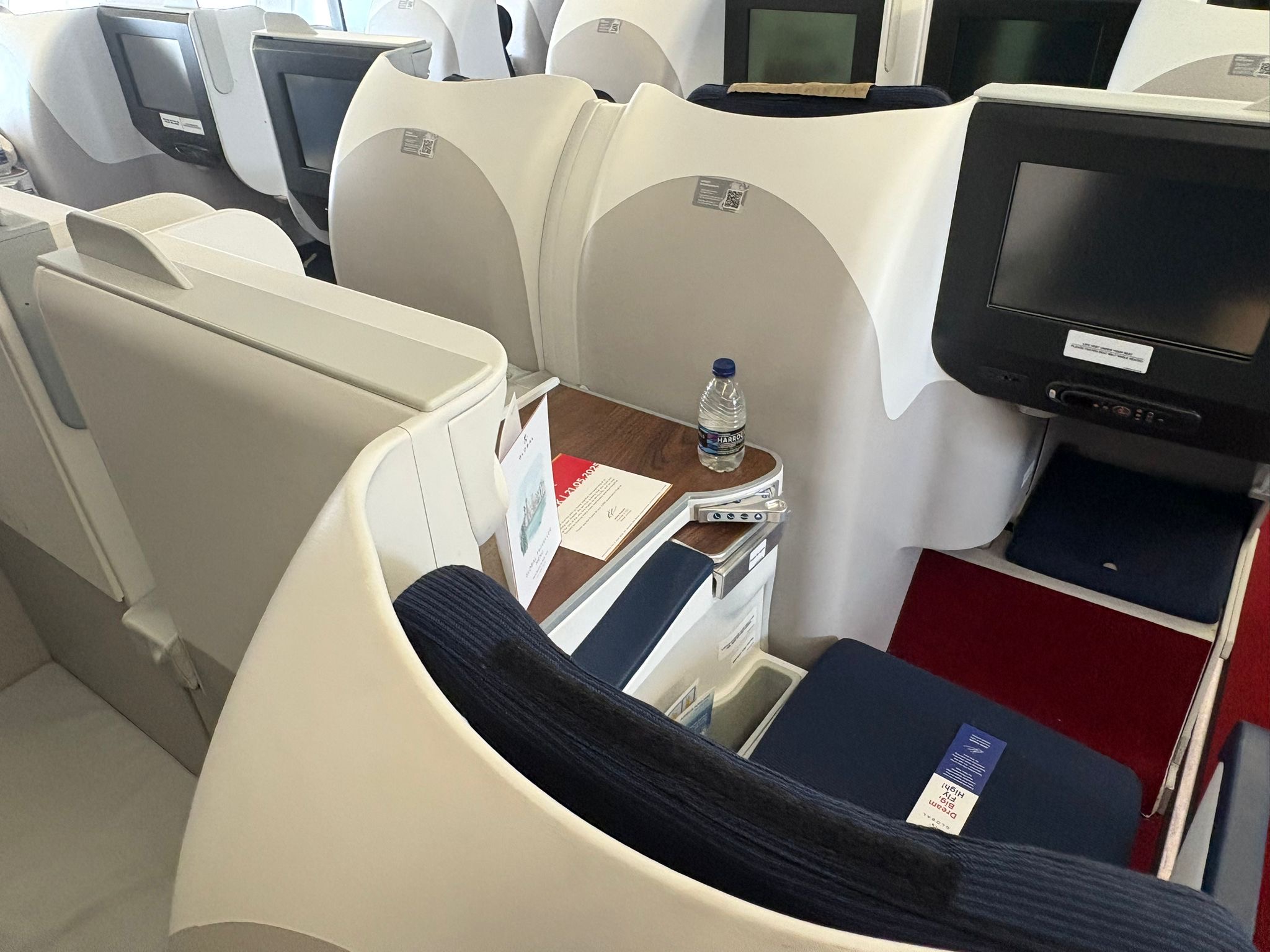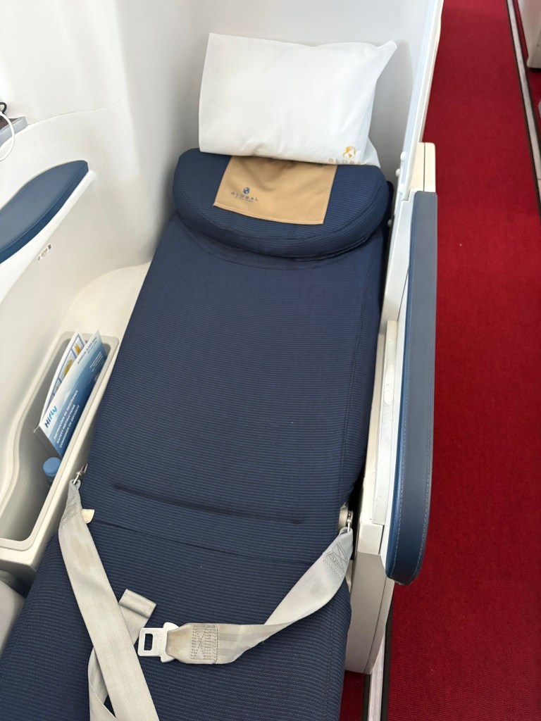 Il retro della presentazione di Asquith e a seguire la poltrona di business class.