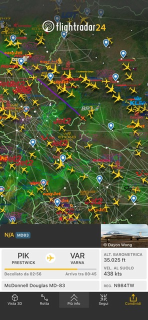 Non e’ relativamente vecchio perche’ con le marche N984TW nel dicembre 1999 fu consegnato alla American Airlines. Ha mantenuto le stesse marche fino ad ora. E’ il piu’ giovane e ha operato l’ultimo volo commerciale per il vettore americano. Tra il 4 settembre 2019 e il 6 gennaio di quest’anno e’ stato in storage a Roswell. Tra i passaggi di oroprieta’ nel novembre 2023 era stato acquistato da Jetran. Poi da World Aviation Services , che lo ha acquistato alla fine dell’anno scorso e il 6 gennaio volo’ a Saltillo in Messico per attivita’ tecniche compresa la riverniciatura. L’aereo era in stato di preservazione. Poi il 18 maggio era ripartito per Roswell. Il 20 ha iniziato il volo di consegna verso Goose Bay, poi Prestwick e quindi Varna. Sicuramente oggi volerà a Bishkek. Oppure a Varna effettuera’ altre attivita’.