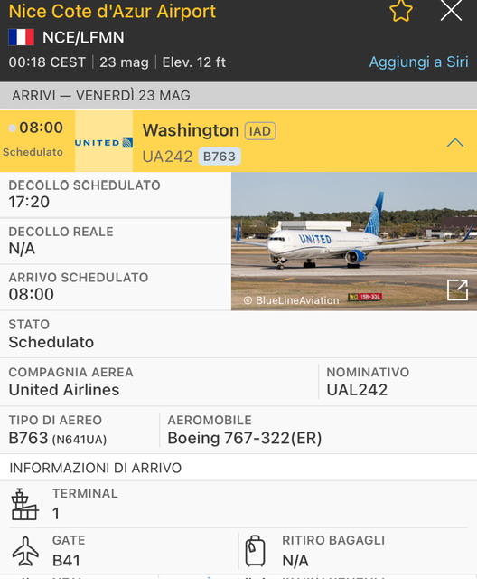 In leggero ritardo rispetto al previsto a Nizza arriverà il primo volo da Washington operato da United Airlines. Il B767-300ER deve ancora decollare dalla capitale americana dove c’e’ una conferenza stampa che si puo’ seguire in streaming su canali social come Facebook sulla pagina Washington Dulles International Airport.