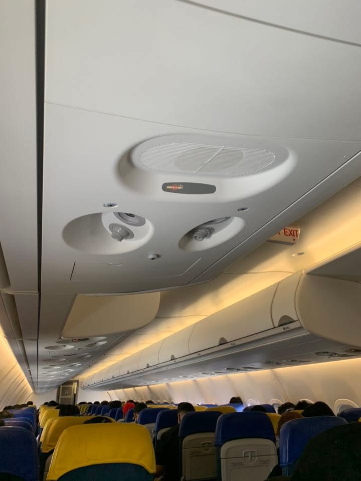 A parte la rumorosità proveniente dai motori se si scelgono i posti posteriori, tutto il resto e’ piu’ che decoroso. Nulla granche’ di negativo eccetto forse il comfort della seduta a livello dell’imbottitura e della qualita’ delle plastiche degli overhead bin. Ha una toilette posteriore ed anteriore. Le dimensioni sono adeguate.
