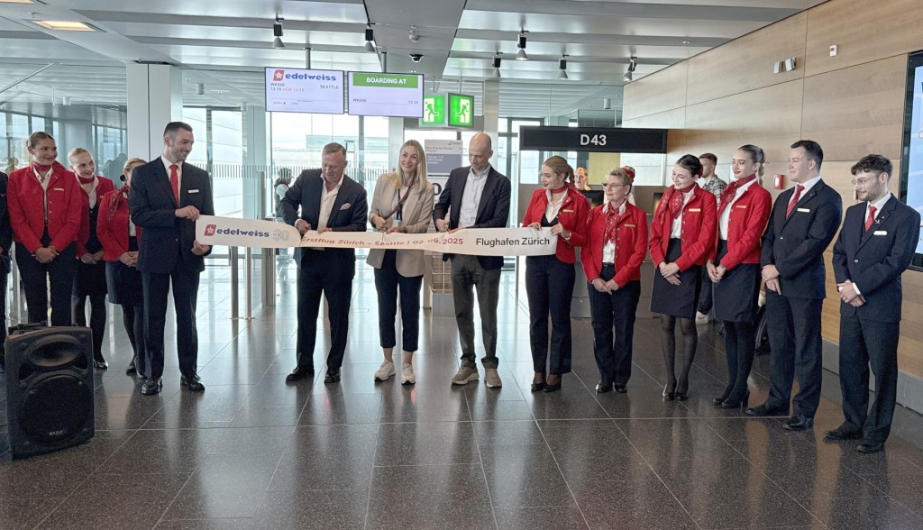 Lunedì scorso, Edelweiss ha lanciato il suo primo volo da Zurigo a Seattle. Il nuovo collegamento è stato celebrato con una cerimonia all’aeroporto di Zurigo. Alla cerimonia simbolica del taglio del nastro al gate, Bernd Bauer, CEO di Edelweiss, Patrick Heymann, Chief Commercial Officer di Edelweiss, e Chantal Weinmann, Responsabile dei Servizi Marketing dell’aeroporto di Zurigo, insieme all’equipaggio, hanno tagliato il nastro, inaugurando ufficialmente la nuova rotta.