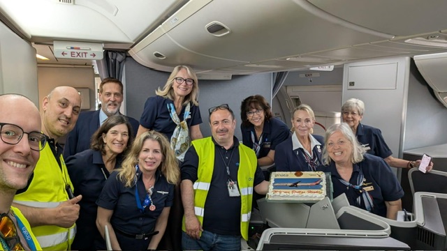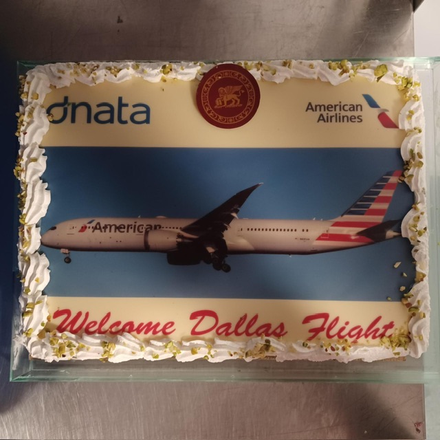 Come ogni inaugurazione che sia, i passeggeri che hanno avuto la fortuna di scegliere di volare su questo primo collegamento c’é’ il fatto di aver avuto l’opportunità di apprezzare la torta che ha preparato dnata per l’occasione. Infatti una porzione e’ stata distribuita a ciascunnpasseggero.