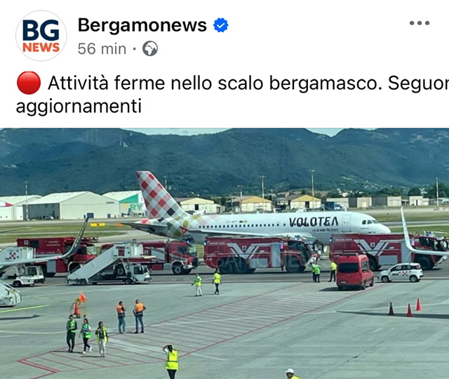 Questa mattina ci sono stati ancora problemi all’aeroporto di Bergamo, dove una persona, secondo Corriere.it é stata risucchiata da uno dei due motori di un Airbus 319 Volotea sembra dopo la fase di push-back.