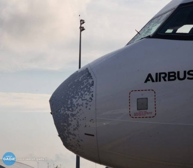 Un A321neo della compagnia aerea maltese Play Airlines Malta é stato fortemente danneggiato dalla grandine dopo il decollo da Rzeszow su un volo charter per Sharm el Sheikh mentre volava per l’aerolinea SkyUp Airlines. L’aereo é poi atterrato senza conseguenze a Katowice.