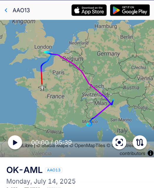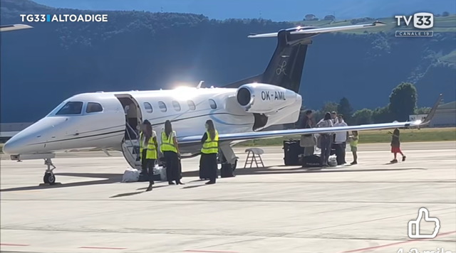 Nella giornata di ieri, come mostrano le immagini di TG33 Alto Adige, Yannick Sinner dopo aver vinto il Torneo di Wimbledon ha fatto toccata e fuga a Bolzano utilizzando un aereo executive Embraer Phenom 300 con le marche OK-AML della compagnia aerea ceca Alpha Aviation.