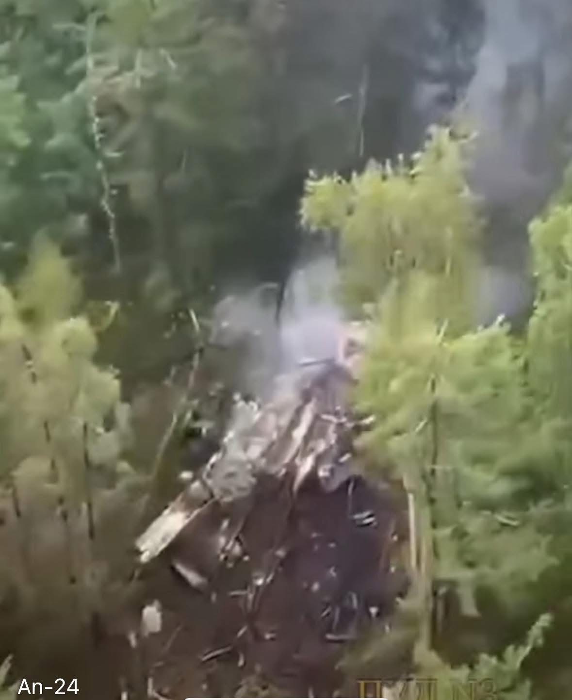 Nella immagine ci sono i relitti fumanti di un Antonov 24 ritrovati in un bosco dai soccorritori. 49 i passeggeri a bordo tra chi vi lavorava e chi aveva comprato il biglietto per volare da L’aereo é della Angara Airlines da Blagoveshchensk verso Tynda per conto di Aurora con numero di volo HZ2311.