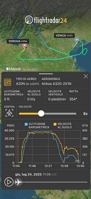 Ieri i il volo easyJet da Bristol a Verona e’ atterrato invece a Verona.