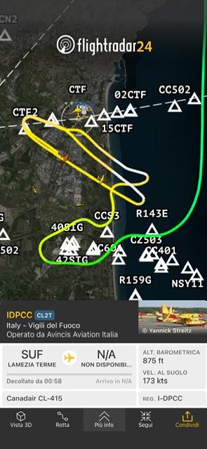 Due Canadair CL-415 dei Vigili del Fuoco e operati da Avincis sono intervenuti, uno é arrivato da Lamezia Terme e l’altro da Catania.