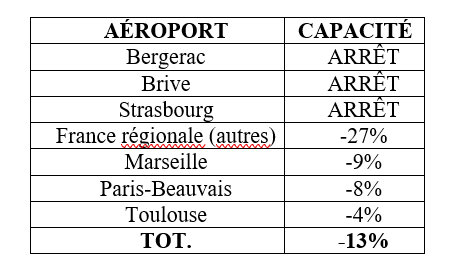 Ryanair, la più grande compagnia aerea d’Europa, ha annunciato il 30 luglio una riduzione del 13% della sua capacità in Francia per questo inverno, con conseguente eliminazione di 750.000 posti, la cancellazione di 25 rotte e la cessazione delle operazioni negli aeroporti di Bergerac, Brive e Strasburgo.