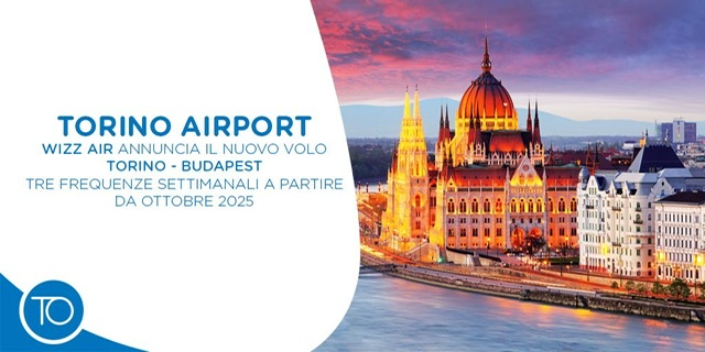 Nell’ultimo round di aperture da parte di Wizzair oggi é stata annunciata la nuova rotta tra Budapest e Torino con tre frequenze settimanali dal 28 ottobre 2025. É la sesta rotta dal capoluogo del Piemonte.
