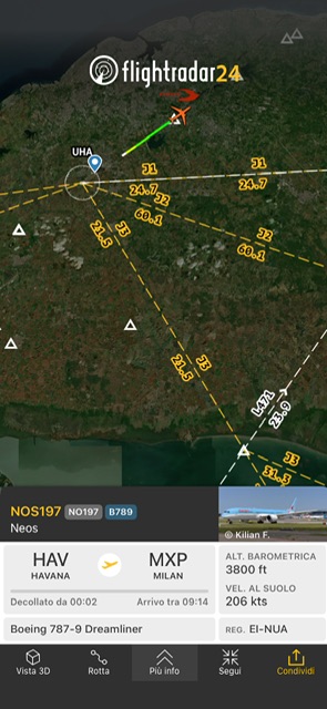 A Cuba, all’aeroporto José Martì di Havana c’é stato un aereo fermo della Neos. É da ieri notte, quando era atterrato alle 00:22 con un ritardo di un ora e mezza sul volo NO196 originante da Milano Malpensa via Roma Fiumicino. É ripartito qualche minuto fà alle 05:02, le 11:02 italiane con oltre 28 ore di ritardo, in quanto doveva partire alle 00:55 di ieri ora locale di Havana.