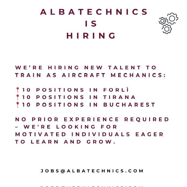 Albatechnics é alla ricerca di personale da impiegare come tecnici aeronautici per inserirli nei propri quadri aziendali per la manutenzione di aeromobili.