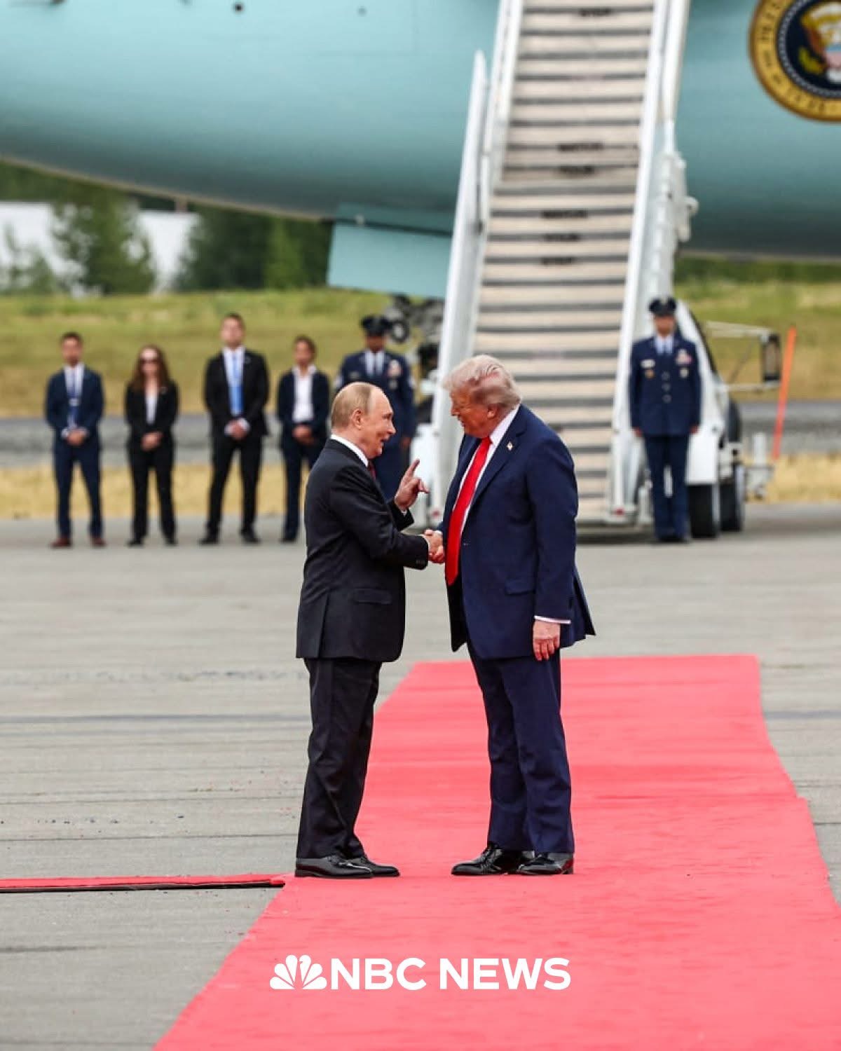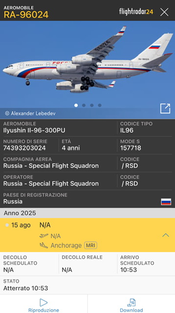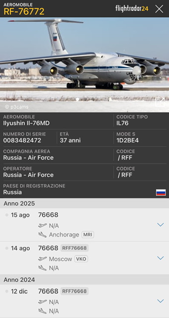 Sullo sfondo di questa immagine c’é l’Air Force One che ha trasportato Trump da Andrews AFB fino in Alaska. Dall’altra parte Putin giunto a bordo di un Ilyushin 96-300 RA-96024 atterrato a Merril Field alle 10:53 insieme ad un Ilyushin 76MD RF-76772 da trasporto giunto qualcbe ora prima.