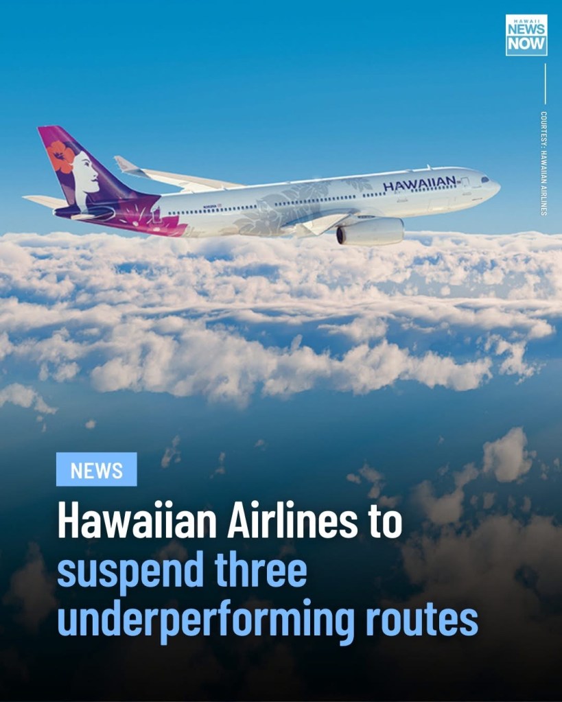 Che l’Asia sia in difficoltà e da dopo il Covid-19 sia con numeri ancora insoddisfacenti é una cosa nota. In uno dei “barometri” del mondo si vede che l’incoming non funziona con gli stessi numeri. Per questo Hawaiian Airlines ha deciso di chiudere due rotte, Seoul e Fukuoka da Honolulu. L’altra é Boston. Per comunicarvelo abbiamo usato la locandina di Hawai News Now.