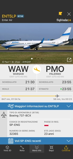 Il velivolo che sta giungendo é un gemello, un Boeing 737-800 SP-ENG che si trovava a Varsavia e con un equipaggio di riserva é stato inviato a Palermo pattendo alle 21:30 ed e’ atterrato alle 23:45. A questo punto con i passeggeri sbarcati inclusi i bagagli dal B737-800 SP-ENQ a breve ripartiranno per Katowice, dove giungeranno con almeno una decina di ore di ritardo a notte fonda.