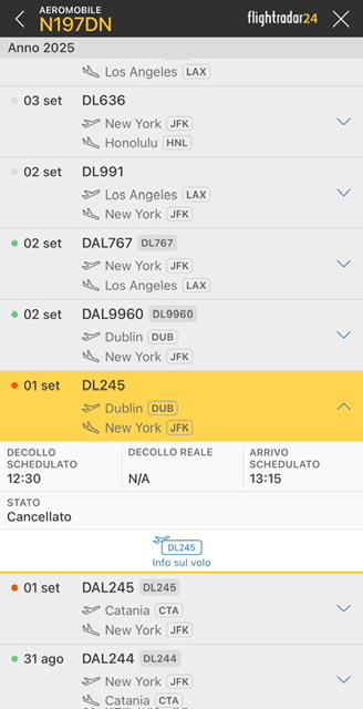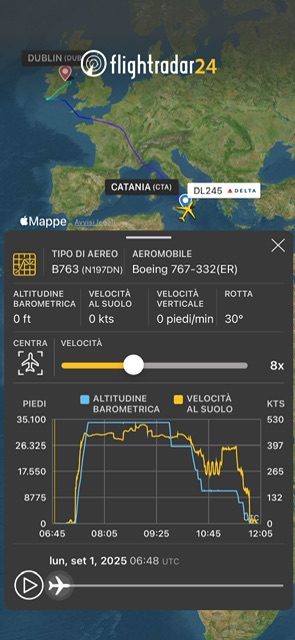 Questa mattina il volo Delta Air Lines DL245 da Catania a New York JFK, quando era sull’Irlanda ha invertito la rotta per Dublino. L’aereo un Boeing 767-332ER N197DN é ancora fermo all’aeroporto irlandese.