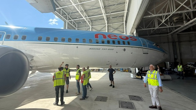 L’hangar é stato di fatto ingrandito con la progettazione e realizzazione di un avancorpo aggiunto all’attuale manufatto mediante strutture in acciaio di dimensioni superiore al fabbricato fino ad oggi utilizzato per le attività tecniche programmate e non programmate. Ma che non permetteva il totale hangaraggio dell’aereo e impediva l’entrata della deriva. Oggi questa possibilità e’ stata di fatto resa realmente posdibile.