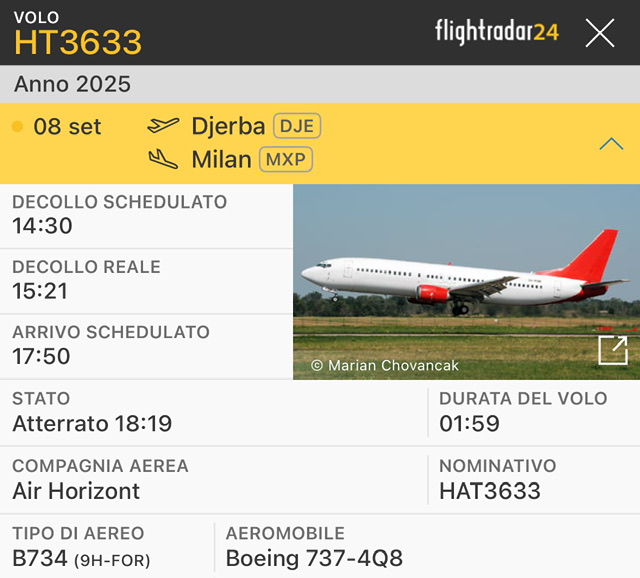 Nel tardo pomeriggio di oggi il volo Air Horizont HT3633 operato con Boeing 737-4Q8 9H-FOR della 4Airways e’ atterrato a Milano Malpensa dopo aver inserito lo sqwak 7700 – emergenza generale.