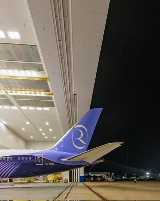L’immatricolazione compare già senza filtri come accade spesso presso un costruttore di aerei. Le marche sono HZ-RXAA.