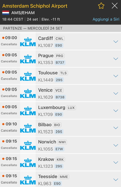 Stamani, in partenza da Amsterdam sono stati cancellati voli su Firenze, e Venezia. Successivamente i voli sono ripartiti regolarmente.