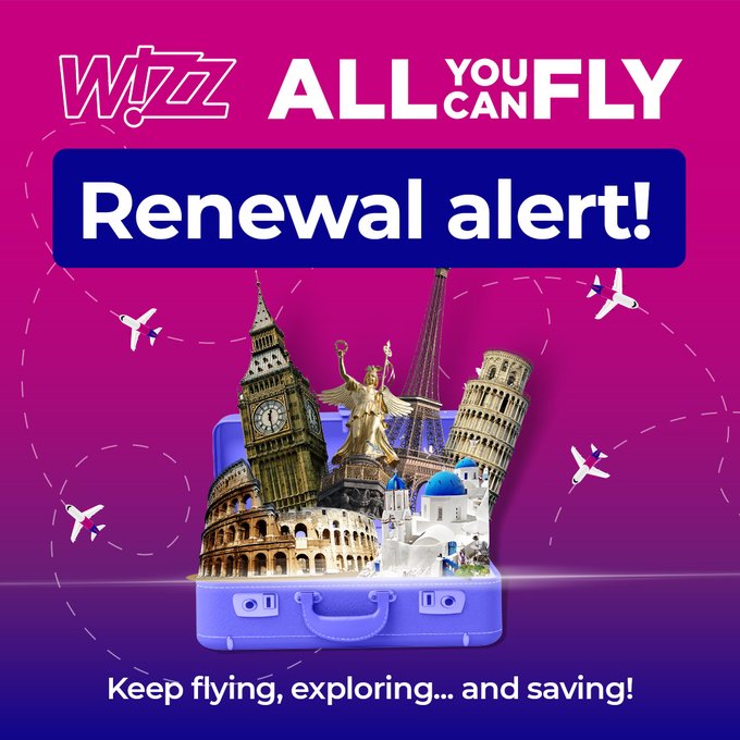 A partire da oggi, i membri esistenti che rinnoveranno la loro iscrizione a WIZZ All You Can Fly riceveranno il loro primo volo gratuitamente, come ringraziamento speciale per aver scelto di continuare a volare con la compagnia aerea ultra-low-cost.