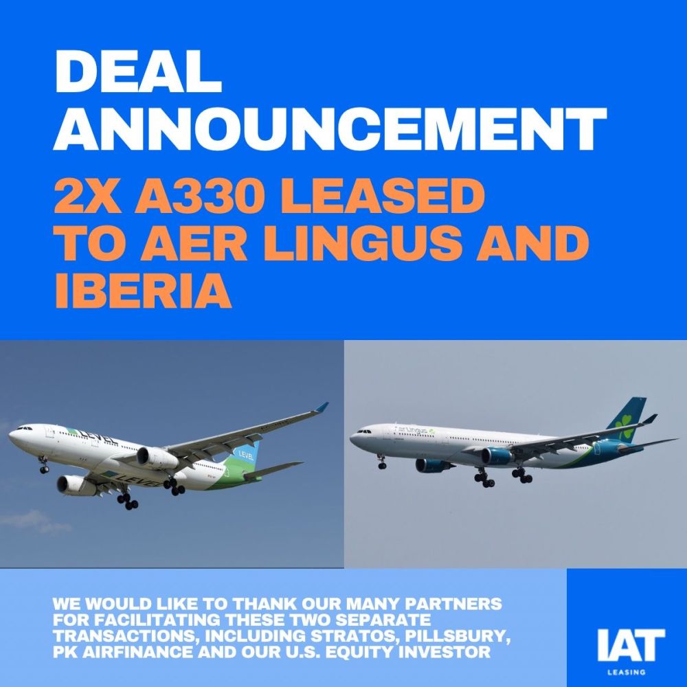 A giugno 2025, IAT Leasing ha facilitato l’acquisizione di un aeromobile A330-300 del 2008, attualmente in leasing ad Aer Lingus, identificato dal numero di serie del produttore 893. Si tratta del secondo acquisto di aeromobili in leasing ad Aer Lingus da fondi gestiti da un importante gestore di aeromobili.