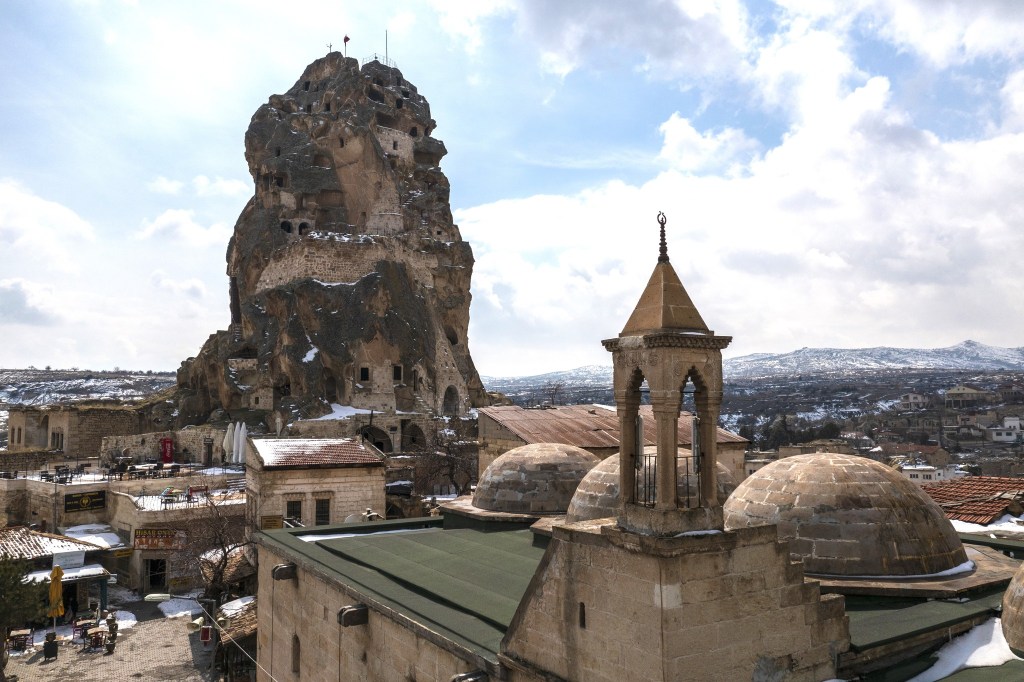 Nel cuore della città sorge il Castello di Ortahisar, un imponente camino delle fate sotto mentite spoglie. Si ritiene che sia stato scolpito durante il periodo ittita, il castello presenta grotte, colombaie e tunnel labirintici ed è considerato uno dei primi insediamenti a più piani al mondo. Oggi è uno dei punti panoramici più alti della regione e offre una vista spettacolare.