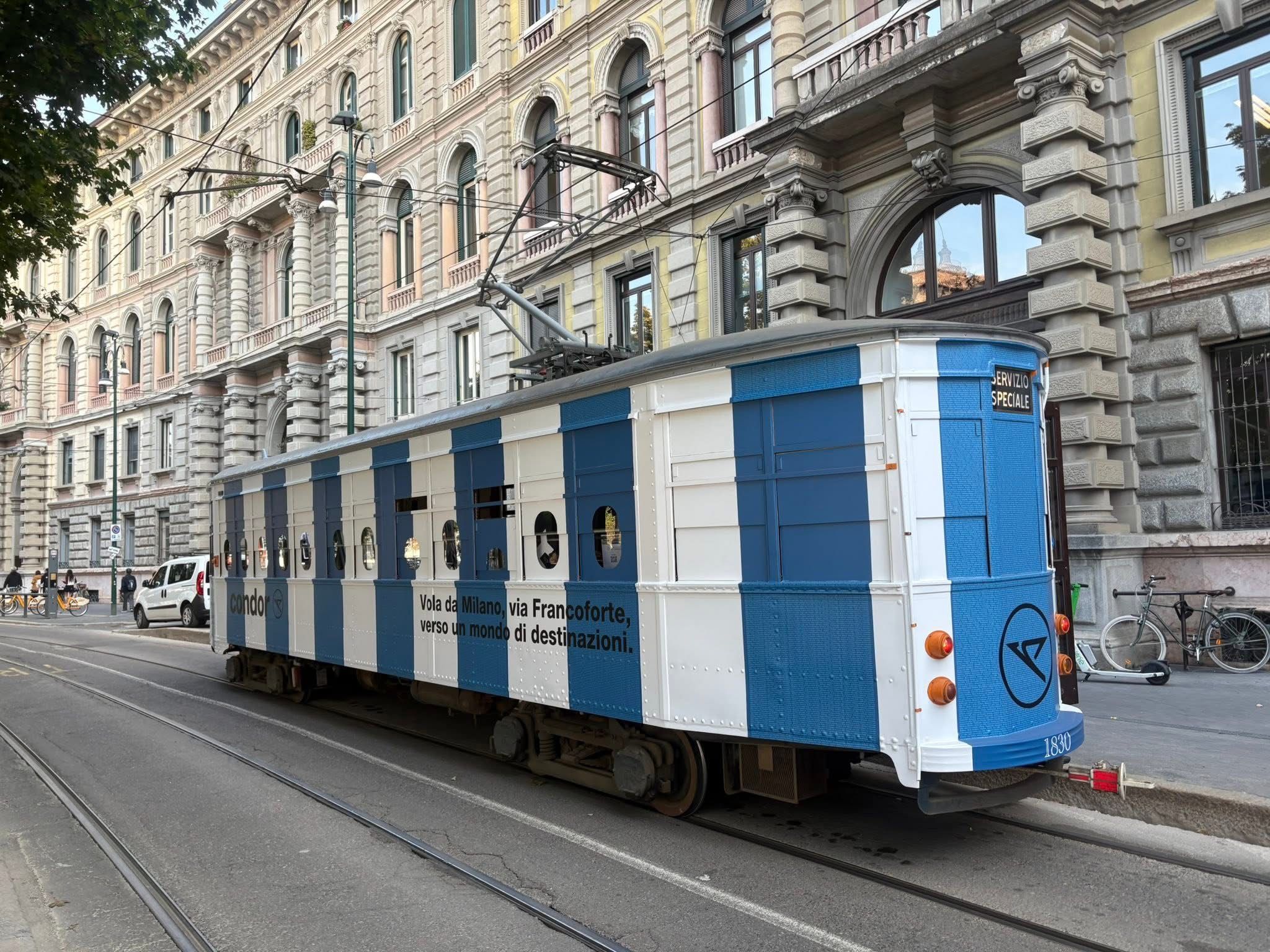 Se qualcuno sta girando a per caso a piedi, in bicicletta, motorino o auto per Milano e si imbatte in un tram storico a strisce colorate bianco e blu , non giallino e con i finestrini di Condor e’ quello che promuove i voli Condor da Milano Malpensa.