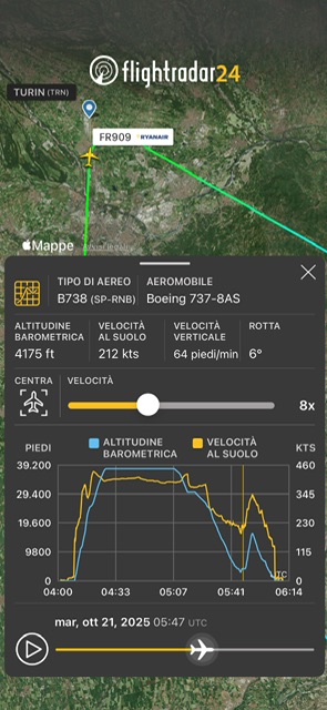 Nella primissima mattinata, all’alba circa un volo Ryanair da Catania per Torino, la FR909 con il velivolo Boeing 737-800, marche SP-RSA e’ atterrato invece a Milano Malpensa.