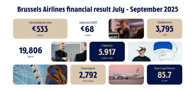 Nel terzo trimestre del 2025, che tradizionalmente è il periodo più positivo dell’anno, Brussels Airlines ha trasportato quasi 2,8 milioni di passeggeri su quasi 20.000 voli. Il numero di passeggeri è aumentato del 12% rispetto allo stesso periodo dell’anno precedente e il numero totale di voli operati è aumentato del 14%.