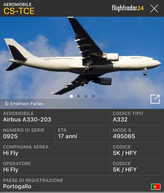 L’aereo e’ giunto a Milano Malpensa proveniente da Lisbona nella giornata del 26 ottobre come NOS896/5K896. E’ partito alle 12:52 e poi atterrato alle 15:58.