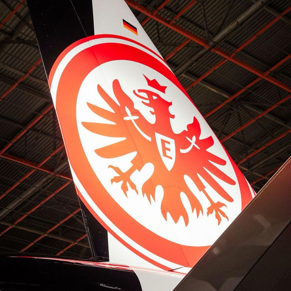 L’Airbus 320-214 D-ASGE della aerolinea tedesca Condor ha assunto “la zebratura” bianca e nera come livrea. In coda il logo dell’Eintracht Frankfurt. E’ il nuovo aereo che trasporta il team di calcio tedesco nelle sue trasferte con questo accordo commerciale.
