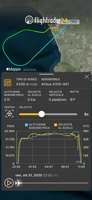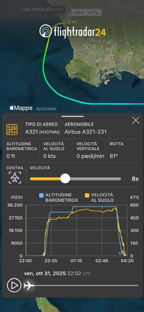 I due voli interessati sono stati la AZ621 Los Angeles – Roma Fiumicino operata dall’A330-900neo EI-HJO e la AA4 per New York JFK. dall’A321-231 N107NN.