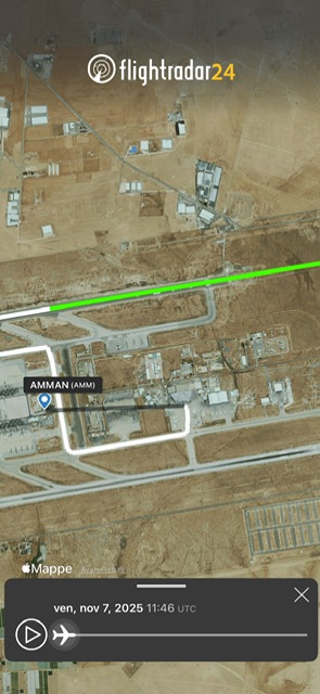 Nei giorni scorsi, per l’esattezza il 7-11-2025 l’Airbus 330-202 EI-EJM ITA Airways é partito da Roma Fiumicino per Amman come AZ8007.
