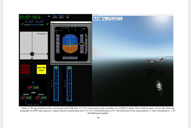 Nel paragrafo che riassume l’evento si legge “shortly after, the aircraft started to descend and GPWS alerts triggered. The aircraft trajectory was recovered when it was closed to the sea surface. The minimum recorded RA was 41 ft. (12,5 metri).