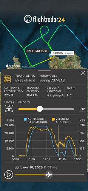 Questo pomeriggio un volo Ryanair da Barcellona e diretto a Palermo, ha poi proseguito per Catania dopo aver tentato due volte l’avvicinamento. Il meteo presenta vento forte al traverso con una quindicina di nodi con raffiche anche di 25 nodi.