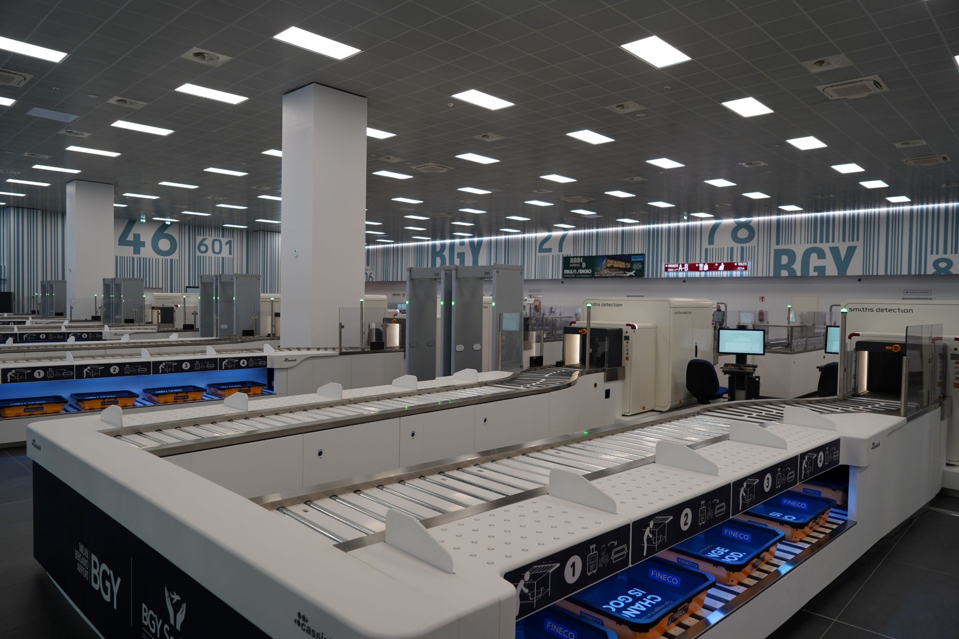 Nella nuova area, che si estende su una superficie di 7500 mq al primo piano dell’aerostazione, sono state installate 14 linee per i controlli di sicurezza dotate delle soluzioni tecnologiche più avanzate, che consentono di mantenere quanto contenuto all’interno del bagaglio a mano, compresi liquidi fino a 2 litri per ogni contenitore e i dispositivi elettronici, riservando la prima postazione ai passeggeri a ridotta mobilità, alle famiglie con bambini piccoli e al fast-track. L’accesso all’area dei controlli di sicurezza è regolato da 9 gate per la lettura della carta d’imbarco.