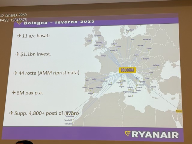 “In qualità di compagnia aerea n.1 in Italia, Ryanair è lieta di annunciare l’operativo invernale 2025 per Bologna, che prevede 44 rotte, inclusa un’entusiasmante rotta ripristinata per Amman, e oltre 520 voli settimanali, offrendo oltre 2,2 milioni di posti a tariffe basse questo inverno (+10% rispetto all’Inverno 2024). Questo programma riflette l’impegno costante di Ryanair verso la regione Emilia-Romagna, stimolando il turismo in entrata, migliorando la connettività e offrendo ai clienti di Bologna e della regione ancora più scelta ai prezzi più bassi d’Europa.Voliamo da e per Bologna da 17 anni, trasportando ad oggi oltre 55 milioni di passeggeri, e abbiamo investito oltre 1 miliardo di dollari con 11 aeromobili basati a Bologna, supportando più di 4.800 posti di lavoro locali. Ryanair è pronta a investire ancora di più: se il Governo italiano abolisse l’addizionale municipale in tutti gli aeroporti italiani, risponderemmo immediatamente con 40 nuovi aeromobili, 250 rotte aggiuntive, 20 milioni di passeggeri in più e 1.500 nuovi posti di lavoro Ryanair—supportando fino a 15.000 posti di lavoro in tutta Italia.”