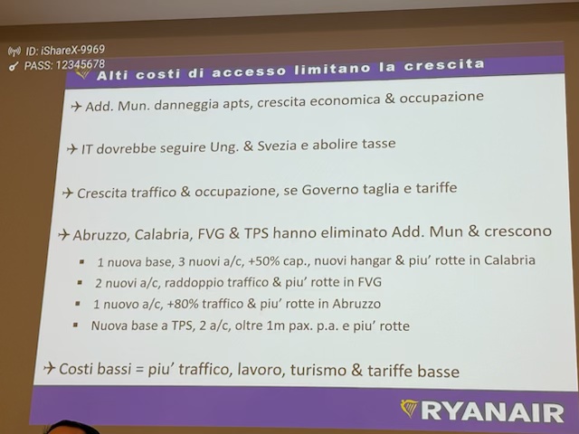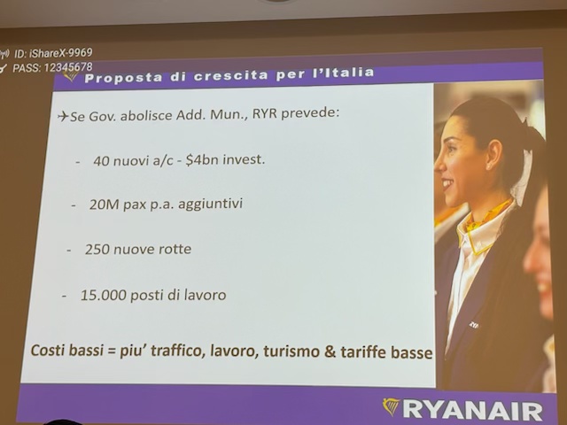 Per stimolare ulteriormente il turismo italiano, Ryanair fa appello al Governo italiano e le autorità regionali affinche’ venga abolita l’addizionale municipale in tutti gli aeroporti italiani.
