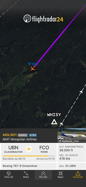 Tra poco piu’ di un’ora a Roma Fiumicino arriverà un Boeing 787-9 MIAT – Mongolian Airlines.