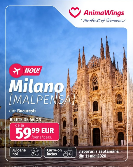 Animawings apre un nuovo collegamento sull’Italia , si tratta del Bucarest – Milano Malpensa dal prossimo maggio 2026.