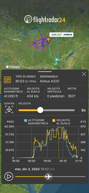 Ieri questo aereo ha volato per la seconda volta tra le 15:50 e le 17:38.