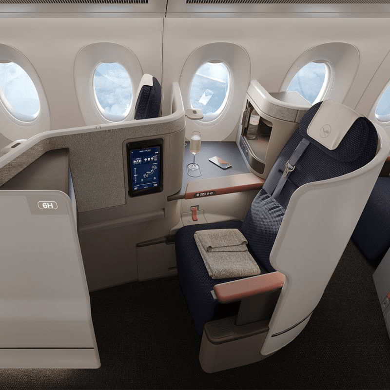Dopo aver volato per qualche settimana in ottobre sulla Francoforte – Toronto, oggi vola sopratutto su Bogotà e Rio de Janeiro. Ma non puo’ vendere quasi tutta la business class , solo quattro posti. Gli altri attendono che venga risolto il problema sulla certificazione della poltrona Collins.